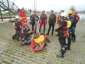Am Samstag dem 01.03.2014 übten Strömungsretter aus den Bezirken Nahe-Hunsrück und Rheinhessen die Evakuierung von Patienten mittels Seiltechnik in der Sportbootschleuse in Kostheim. Die Schleuse stellte dabei ein ideales Übungsgeldende zum Üben unter kontrollierten bedingungen dar.